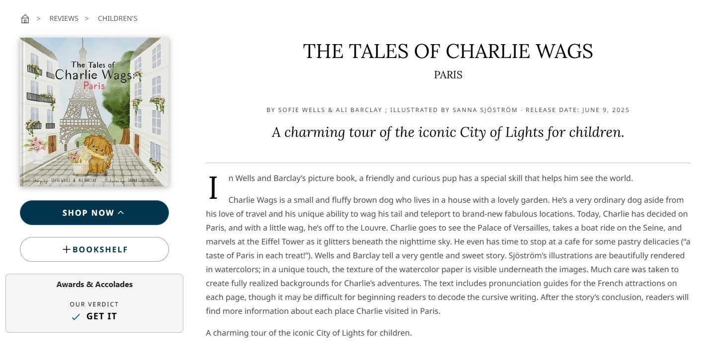 Kirkus gives Charlie Wags: Paris its stamp of approval. Read the full review.